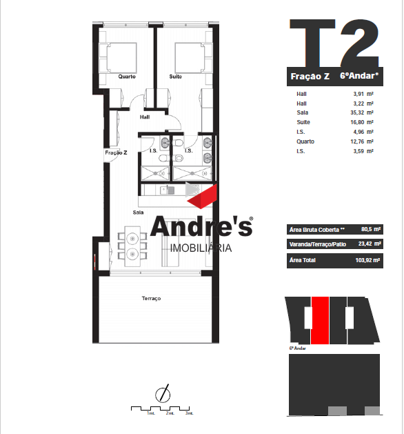 T2 NOVO | 1 lugar de garagem | Terraço 23,42m² | Leça da Palmeira O apartamento T2 apresenta uma área generosa de 80,5m² e uma distribuição eficiente dos espaços, com um terraço de 23,42m² com vistas sobre o porto de Leixões, que convida a desfrutar de momentos ao ar livre com total conforto e privacidade. Os interiores foram desenhados com atenção ao detalhe, privilegiando a luz natural, a funcionalidade e o bem-estar, através da utilização de materiais de alta qualidade e de um design moderno e harmonioso. Cada fração inclui lugar de garagem, sendo que algumas contam ainda com box privada, reforçando a comodidade e segurança. Situado numa das zonas mais privilegiadas do Norte de Portugal, este empreendimento destaca-se pela localização excecional, pela arquitetura contemporânea e pela qualidade dos acabamentos. O Edifício Santiago ergue-se no coração de Leça da Palmeira, combinando a proximidade ao mar com a tranquilidade dos espaços verdes envolventes. A poucos minutos do Porto, do Aeroporto Internacional e das praias atlânticas, este projeto oferece uma experiência de vida equilibrada entre a energia citadina e o sossego residencial. O Edifício Santiago oferece soluções versáteis para diferentes estilos de vida, ideais tanto para famílias como para jovens profissionais ou investidores. As áreas brutas privativas variam entre 80 m² e 129 m², com varandas, terraços e espaços exteriores que podem ultrapassar os 80 m² nas coberturas. A localização é um dos grandes trunfos deste projeto: a apenas 2 minutos a pé de restaurantes, bares e da Quinta da Conceição, 5 minutos de bicicleta das praias de Leça da Palmeira, 10 minutos de carro do Aeroporto Francisco Sá Carneiro e 15 minutos do centro do Porto. A envolvente dispõe ainda de escolas, centros de saúde, comércio e serviços, garantindo todas as condições para uma vida cómoda e tranquila. O Edifício Santiago é uma oportunidade única para viver ou investir numa das zonas mais valorizadas da Área Metropolitana do Porto, onde o mar, a cidade e o conforto se encontram em perfeita sintonia. FRAÇÃO: Z (6º PISO) Andre's Imobiliária - desde 2013 a crescer com o Porto