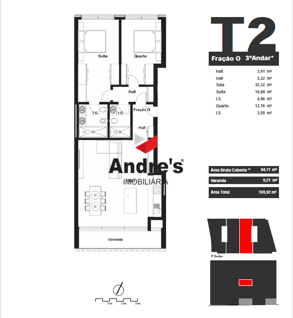 T2 NOVO | 1 Garagem Box | Varanda 9,21m² | Leça da Palmeira O apartamento T2 apresenta uma área generosa de 94,71m² e uma distribuição eficiente dos espaços, com uma varanda de 9,21m² com vistas sobre o porto de Leixões, que convida a desfrutar de momentos ao ar livre com total conforto e privacidade. Os interiores foram desenhados com atenção ao detalhe, privilegiando a luz natural, a funcionalidade e o bem-estar, através da utilização de materiais de alta qualidade e de um design moderno e harmonioso. Cada fração inclui lugar de garagem, sendo que algumas contam ainda com box privada, reforçando a comodidade e segurança. Situado numa das zonas mais privilegiadas do Norte de Portugal, este empreendimento destaca-se pela localização excecional, pela arquitetura contemporânea e pela qualidade dos acabamentos. O Edifício Santiago ergue-se no coração de Leça da Palmeira, combinando a proximidade ao mar com a tranquilidade dos espaços verdes envolventes. A poucos minutos do Porto, do Aeroporto Internacional e das praias atlânticas, este projeto oferece uma experiência de vida equilibrada entre a energia citadina e o sossego residencial. O Edifício Santiago oferece soluções versáteis para diferentes estilos de vida, ideais tanto para famílias como para jovens profissionais ou investidores. As áreas brutas privativas variam entre 80 m² e 129 m², com varandas, terraços e espaços exteriores que podem ultrapassar os 80 m² nas coberturas. A localização é um dos grandes trunfos deste projeto: a apenas 2 minutos a pé de restaurantes, bares e da Quinta da Conceição, 5 minutos de bicicleta das praias de Leça da Palmeira, 10 minutos de carro do Aeroporto Francisco Sá Carneiro e 15 minutos do centro do Porto. A envolvente dispõe ainda de escolas, centros de saúde, comércio e serviços, garantindo todas as condições para uma vida cómoda e tranquila. O Edifício Santiago é uma oportunidade única para viver ou investir numa das zonas mais valorizadas da Área Metropolitana do Porto, onde o mar, a cidade e o conforto se encontram em perfeita sintonia. FRAÇÃO: O (3º PISO) Andre's Imobiliária - desde 2013 a crescer com o Porto