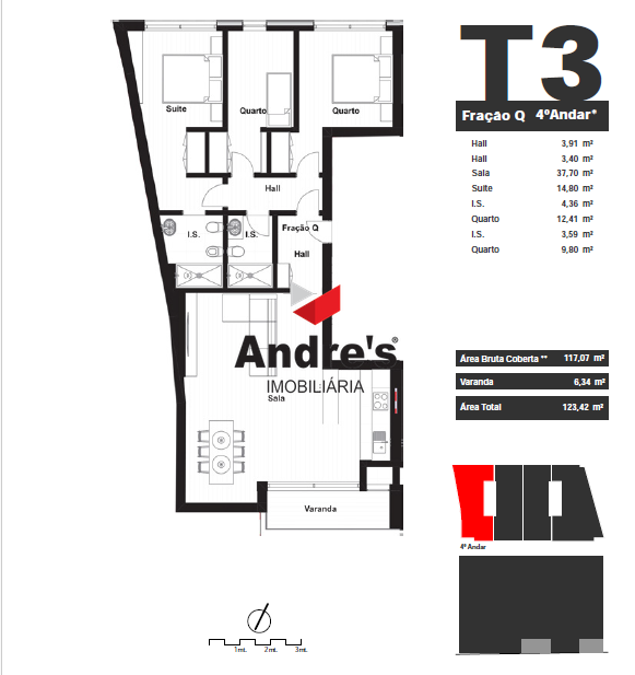 T3 NOVO | 1 lugar de garagem | Varanda 6,34m² | Leça da Palmeira O apartamento T3 apresenta uma área generosa de 117m² e uma distribuição eficiente dos espaços, com uma varanda de 6,34m² com vistas sobre o porto de Leixões, que convida a desfrutar de momentos ao ar livre com total conforto e privacidade. Os interiores foram desenhados com atenção ao detalhe, privilegiando a luz natural, a funcionalidade e o bem-estar, através da utilização de materiais de alta qualidade e de um design moderno e harmonioso. Cada fração inclui lugar de garagem, sendo que algumas contam ainda com box privada, reforçando a comodidade e segurança. Situado numa das zonas mais privilegiadas do Norte de Portugal, este empreendimento destaca-se pela localização excecional, pela arquitetura contemporânea e pela qualidade dos acabamentos. O Edifício Santiago ergue-se no coração de Leça da Palmeira, combinando a proximidade ao mar com a tranquilidade dos espaços verdes envolventes. A poucos minutos do Porto, do Aeroporto Internacional e das praias atlânticas, este projeto oferece uma experiência de vida equilibrada entre a energia citadina e o sossego residencial. O Edifício Santiago oferece soluções versáteis para diferentes estilos de vida, ideais tanto para famílias como para jovens profissionais ou investidores. As áreas brutas privativas variam entre 80 m² e 129 m², com varandas, terraços e espaços exteriores que podem ultrapassar os 80 m² nas coberturas. A localização é um dos grandes trunfos deste projeto: a apenas 2 minutos a pé de restaurantes, bares e da Quinta da Conceição, 5 minutos de bicicleta das praias de Leça da Palmeira, 10 minutos de carro do Aeroporto Francisco Sá Carneiro e 15 minutos do centro do Porto. A envolvente dispõe ainda de escolas, centros de saúde, comércio e serviços, garantindo todas as condições para uma vida cómoda e tranquila. O Edifício Santiago é uma oportunidade única para viver ou investir numa das zonas mais valorizadas da Área Metropolitana do Porto, onde o mar, a cidade e o conforto se encontram em perfeita sintonia. FRAÇÃO: Q (4º PISO) Andre's Imobiliária - desde 2013 a crescer com o Porto